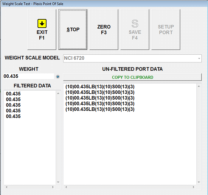 CompuReg POS Software Supports many of the NCI Series ECR and other industry Standard Weight Scales. Consult our Supported Hardware page for details HERE. Setting Up an ECR Weight Scale: Test the weight scale through the CompuReg POS Software interface by choosing from the Main System Menu: Utilities, Diagnostics then Weight Scale. Configure the Weight Scale port so that it matches the proper Serial Port settings that the scale is set to. Press F2 Start and verify you have had a successful test. Once successfully tested choose Save. If you do not get a successful test consult with a hardware expert to assist in properly installing a supported weight scale on your computer. |